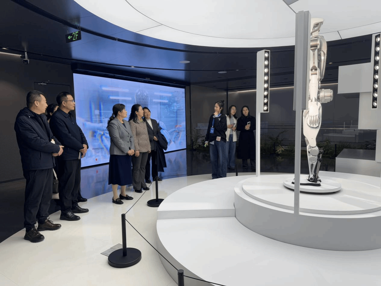 李志萍介绍了学校基本情况、办学特色、专业布局及实训条件。她表示,具身智能作为新兴产业、未来产业,发展潜力巨大,应用场景广泛,学校高度关注产业发展,积极探索具身智能为学校特色专业赋能。希望以此次考察交流为契机,进一步加强与企业在人才培养、专业共建等方面的合作,推动教育链、人才链与产业链、创新链深度融合,更好服务区域经济社会发展。