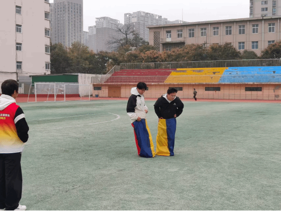 比赛当天,每组3名选手需以接力形式参赛,选手套入布袋后从起点蹦跳至指定地点,完成交接后下一名队员方可出发,全程严禁脚出布袋、擅自脱袋。各队伍按抽签顺序分组比拼,工作人员实时计时排名,最终用时最短的前6支队伍晋级决赛。决赛中,参赛选手们全力冲刺,现场掌声与欢呼声不断,经过激烈角逐,比赛最终评选出一等奖1组、二等奖2组、三等奖3组。