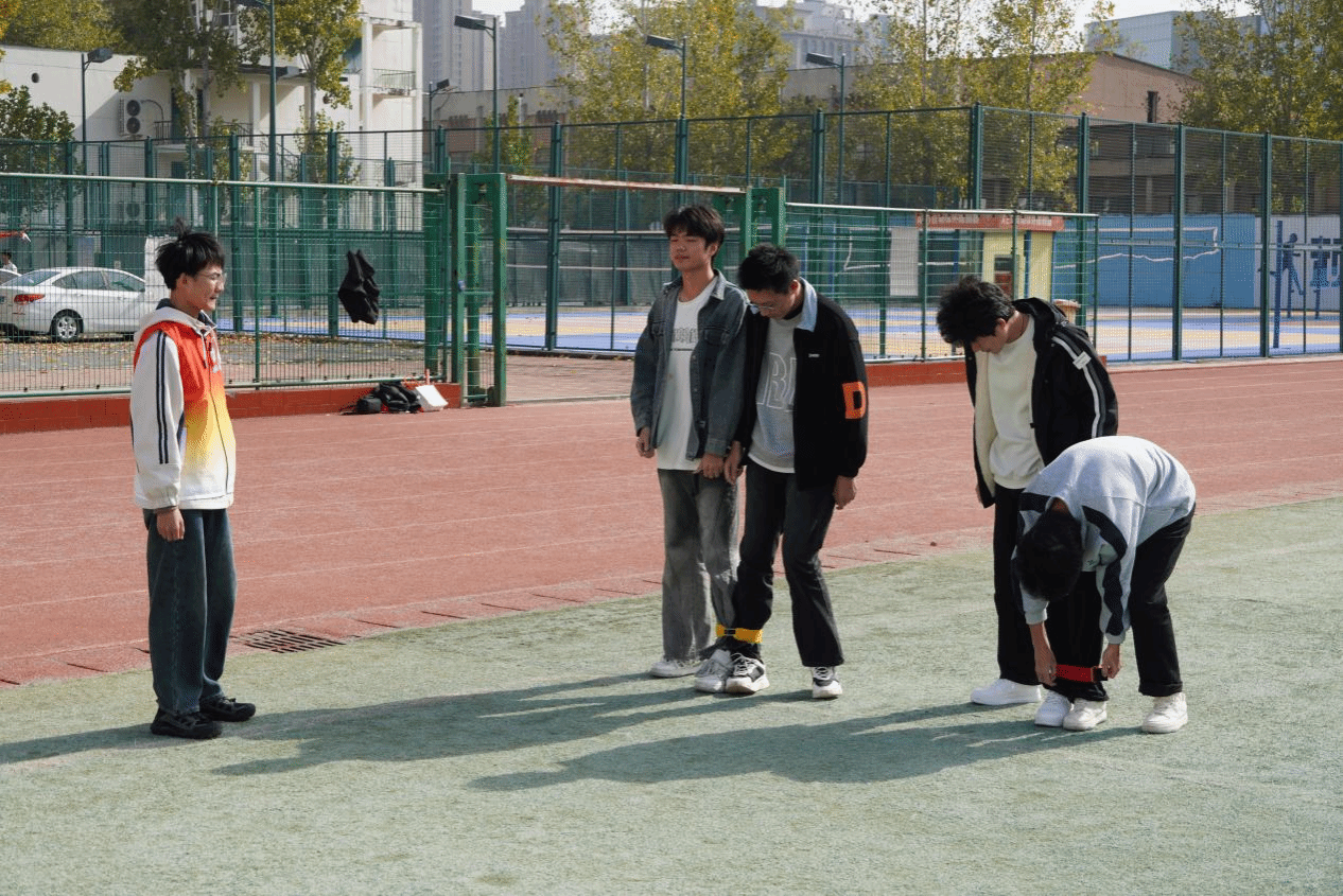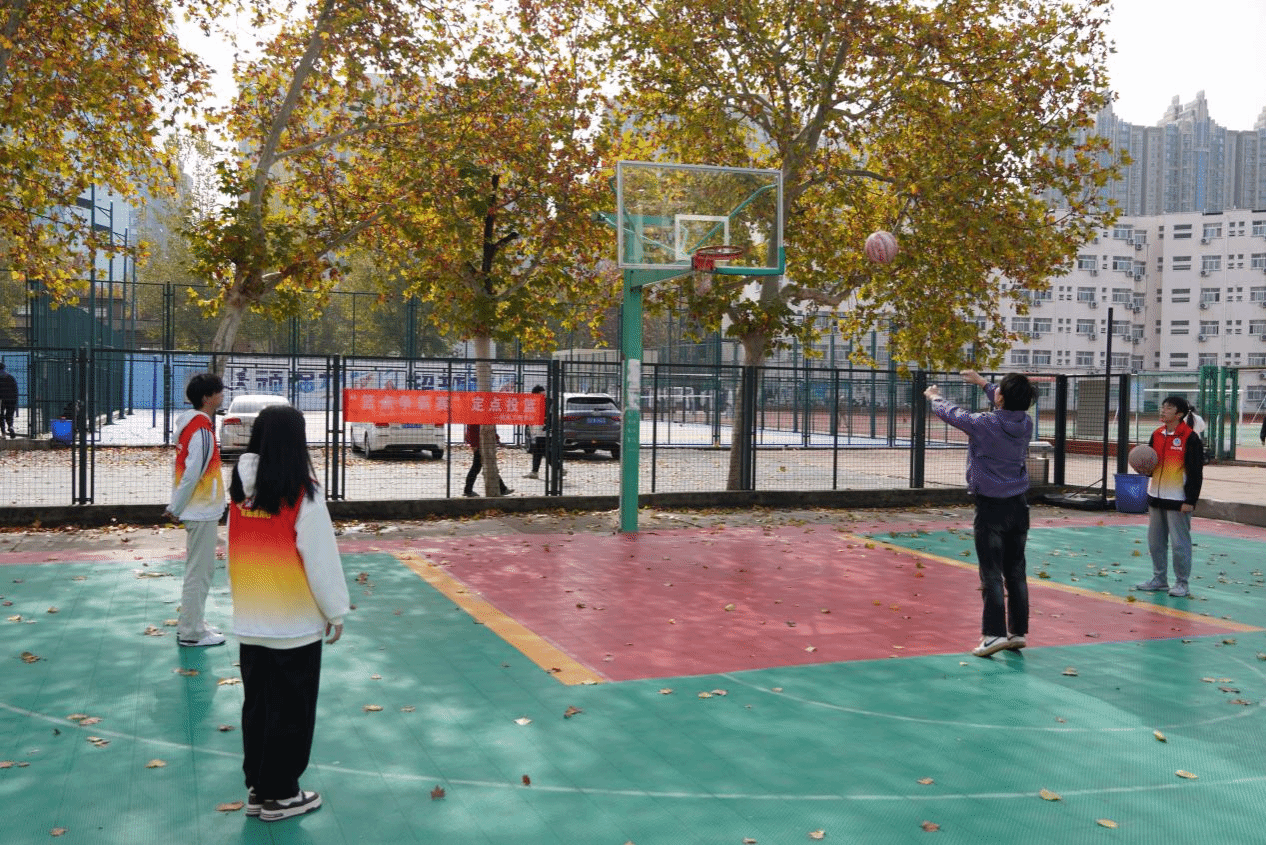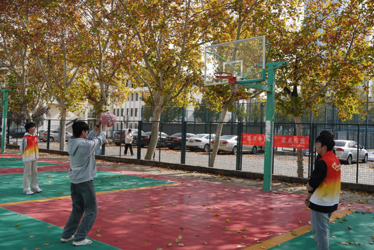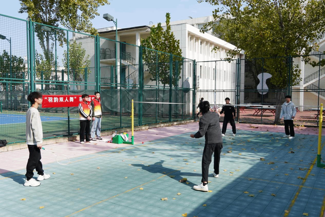 活动当天,三项赛事在大操场同步展开,现场气氛紧张而热烈。“羽韵双人舞”羽毛球双打项目中,同学们两人一组,灵活走位、精准挥拍,每一次精彩的得分都赢得场边观众的阵阵喝彩,大家在汗水与欢笑中尽享运动激情;“联步逐光行”两人三足比赛中,搭档们默契配合,口号整齐、步伐一致,彼此扶持中凝聚团结力量;“篮点争霸赛”定点投篮环节中,同学们凝神聚气,瞄准篮筐果断出手,篮球划出优美弧线,精准入网,展现出青春的蓬勃朝气。